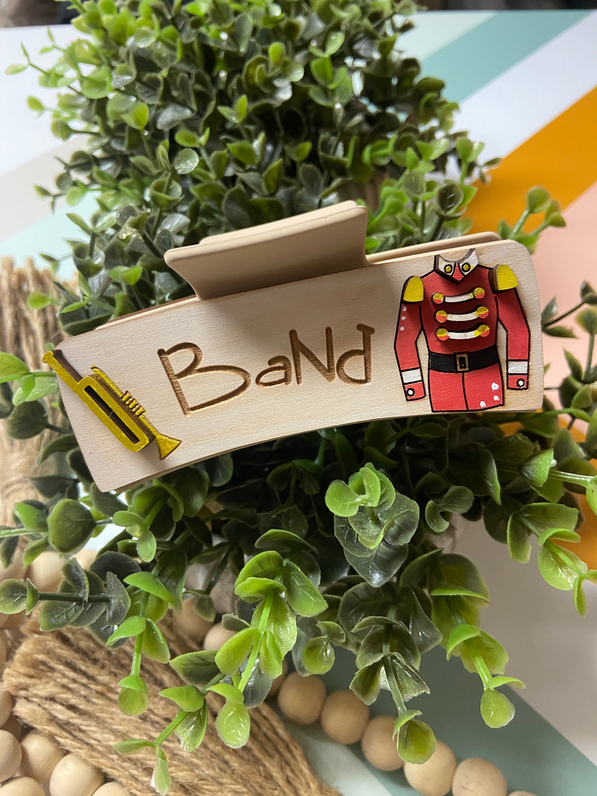 Expertly crafted with precision, this Band Hair Clip boasts a laser cut and engraved design. With a 4 inch length and unique hand painted touch, each piece is one-of-a-kind. Stand out from the crowd with this stylish and versatile accessory. Color variations add to its charm.
