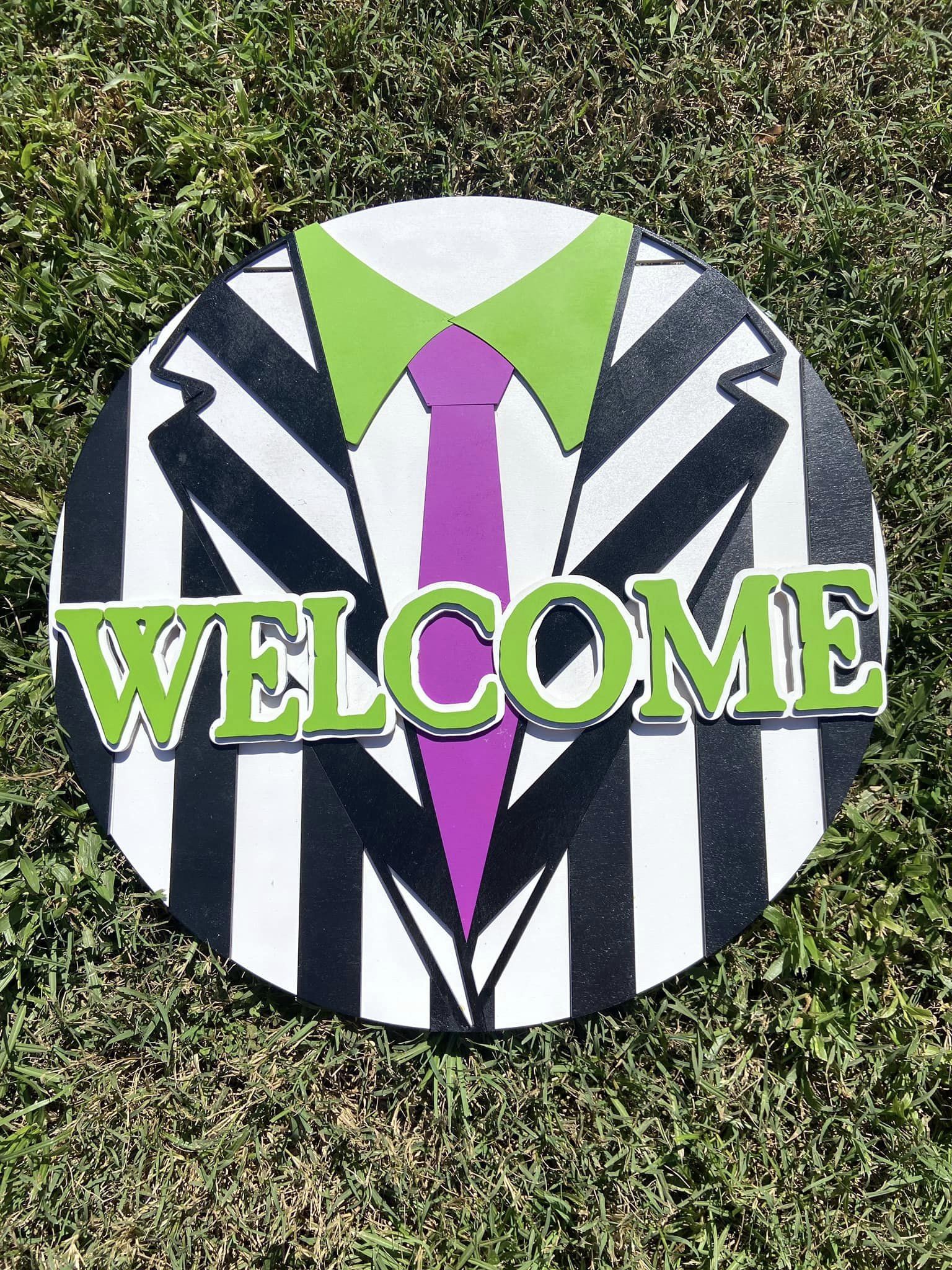 Enhance your door decor with the Beetle J Door Hanger. This hand painted and laser cut hanger measures 18 inches and is sure to spark conversation. Have fun while avoiding the name three times to prevent misfortune.