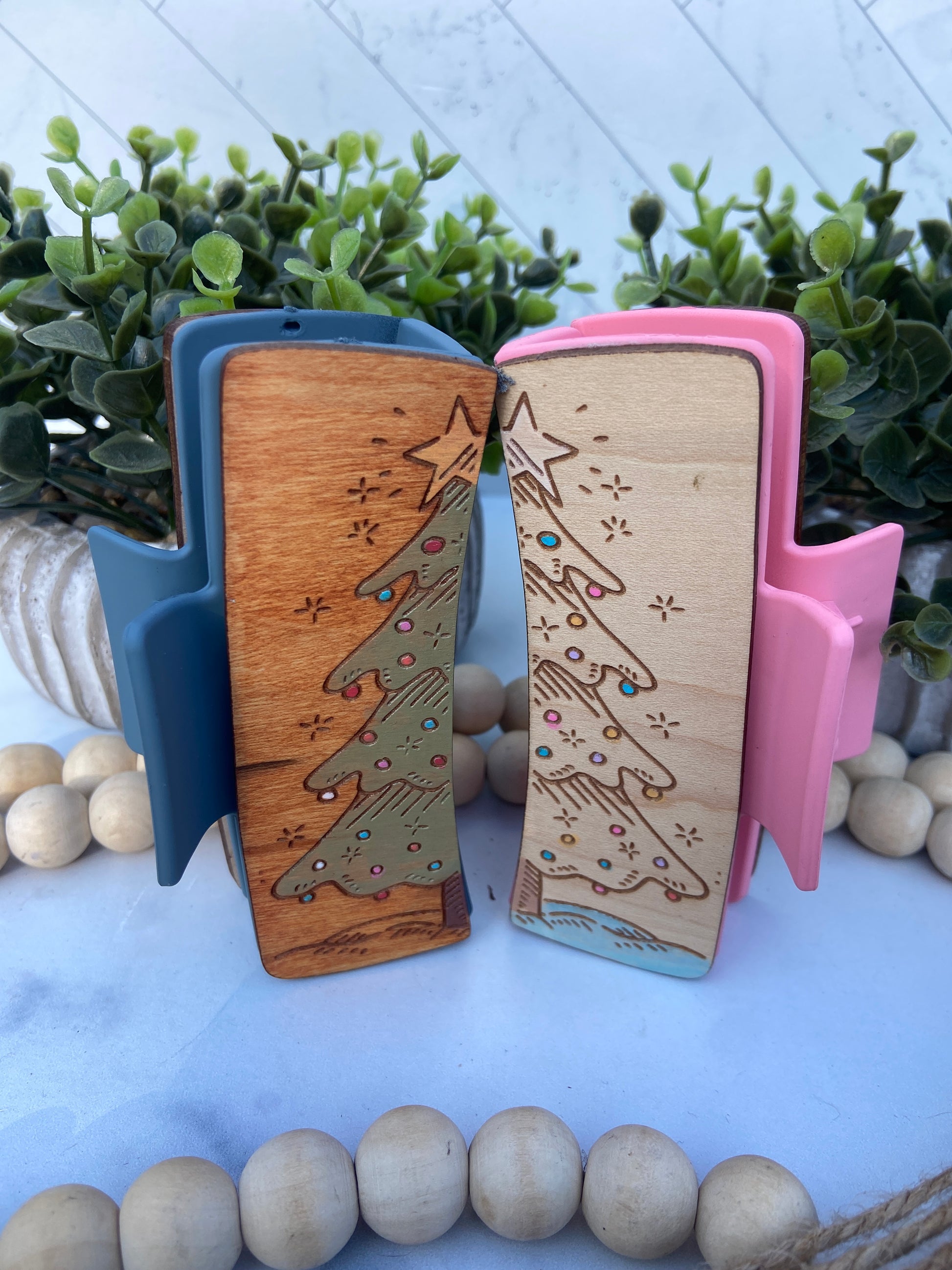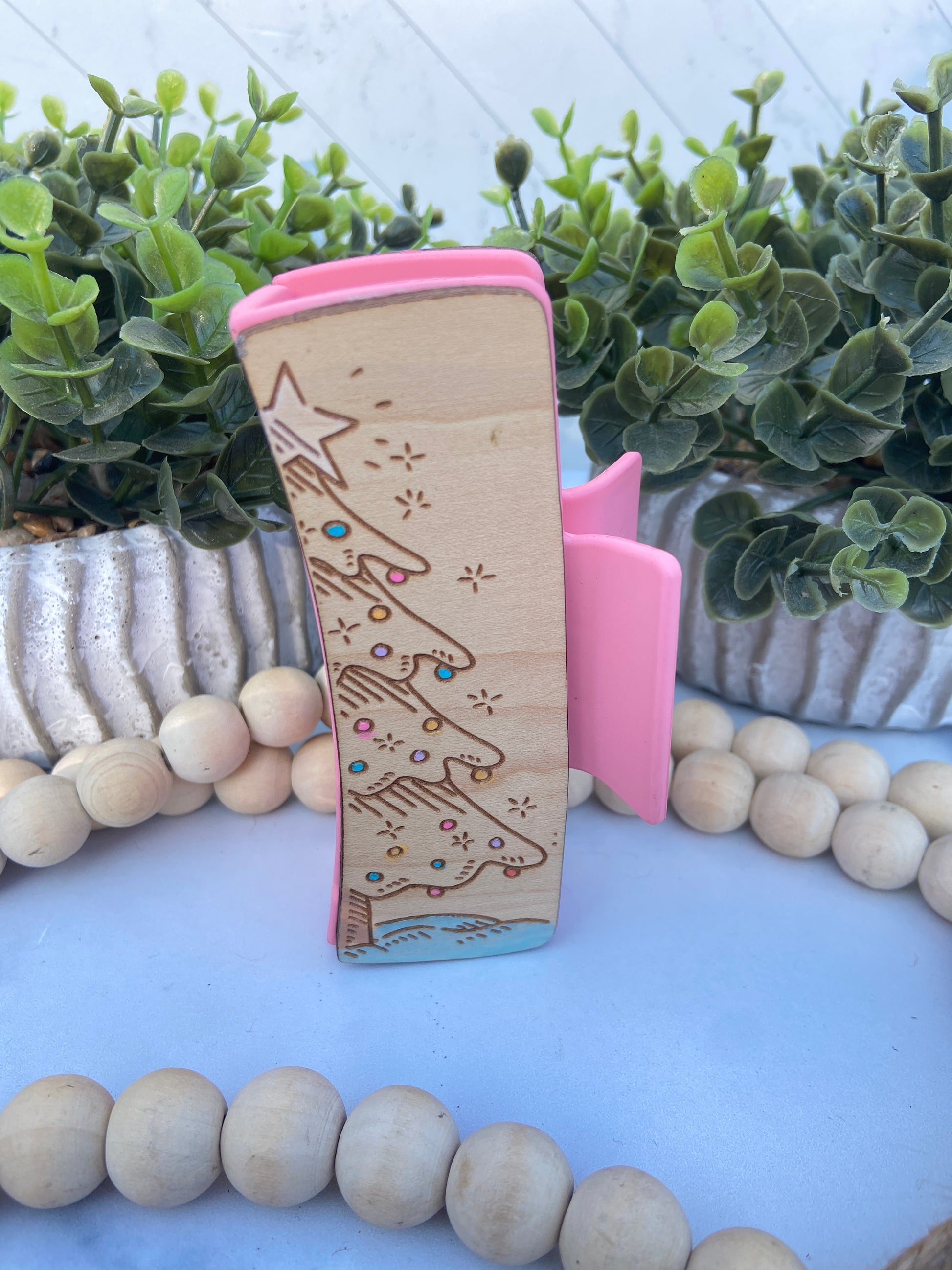 Add some festive flair to your hairstyle with our Christmas Tree Hair Clip. Measuring 4 inches and featuring a laser cut design, this clip is then hand painted or stained for a unique touch. Stand out at holiday parties with this charming accessory. Color will vary.