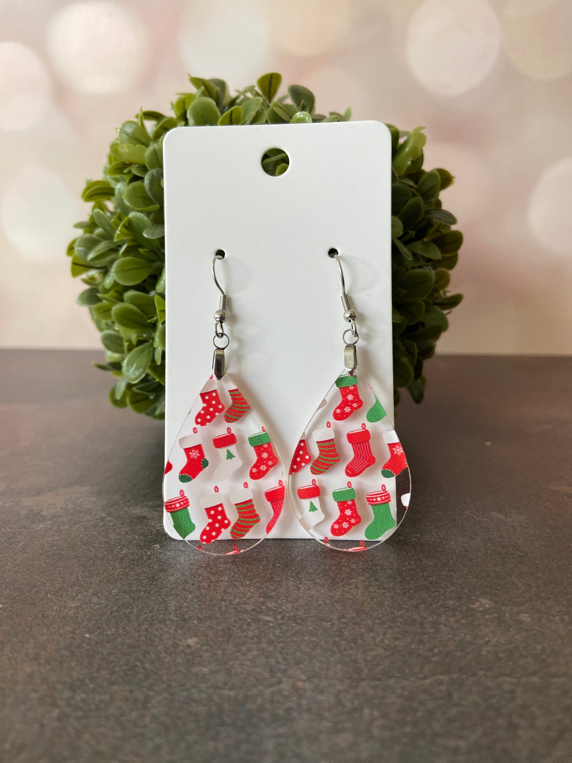 Clear Acrylic Christmas Stockings Earrings