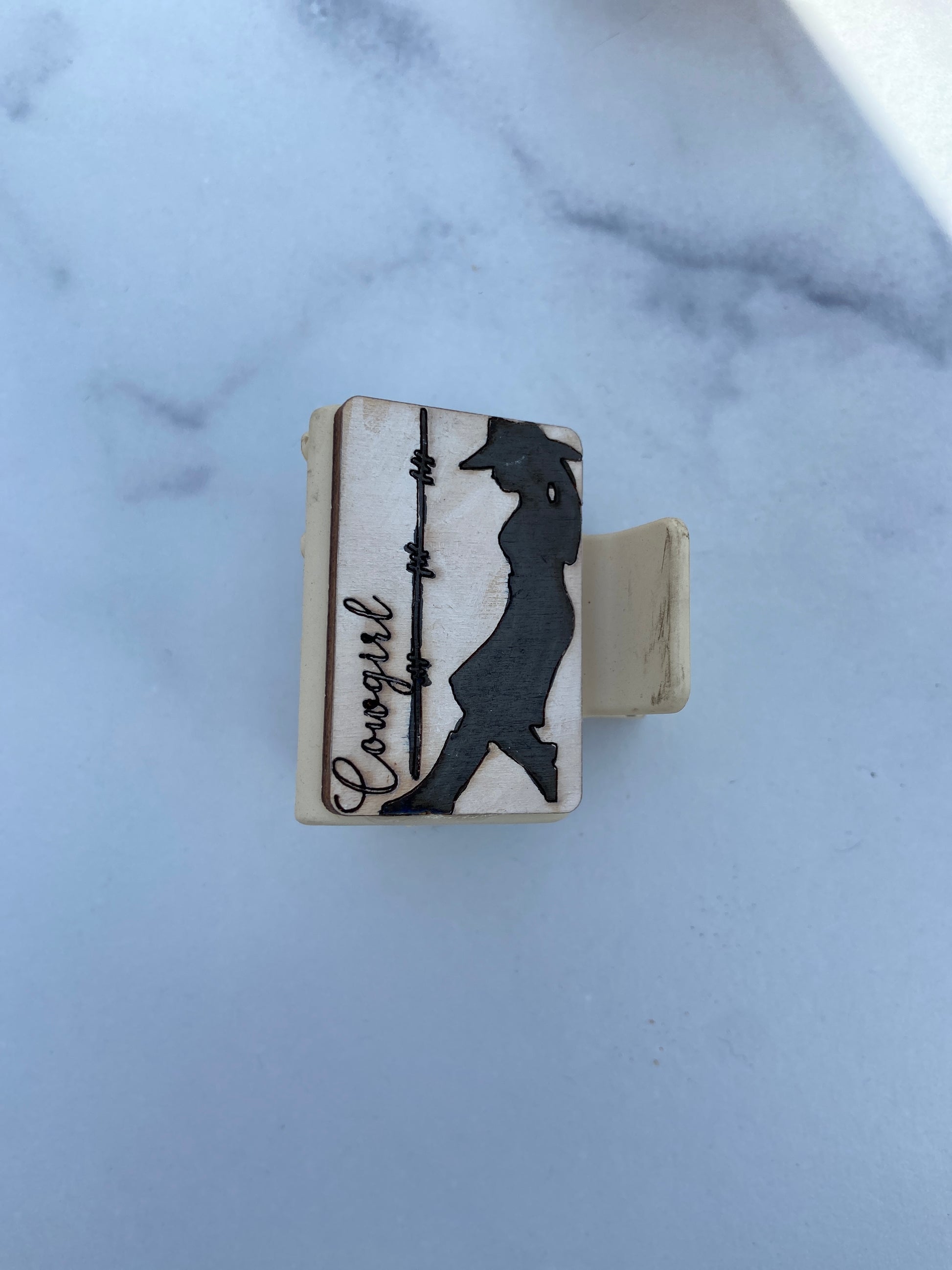 These cool Cow Girl Silhouette, 4 in AND 2 in Hair clips will make anyone look twice! Laser cut, hand painted design will add to your look. Each hair clip color will be different as they are made on demand. If you would like a certain color please add to note and I will try my best. These hair clips are a fun and unique addition to any outfit. With a laser-cut, hand-painted design, each piece is one-of-a-kind and tailored to your preferences. Make a statement and stand out from the crowd with this personalized accessory.