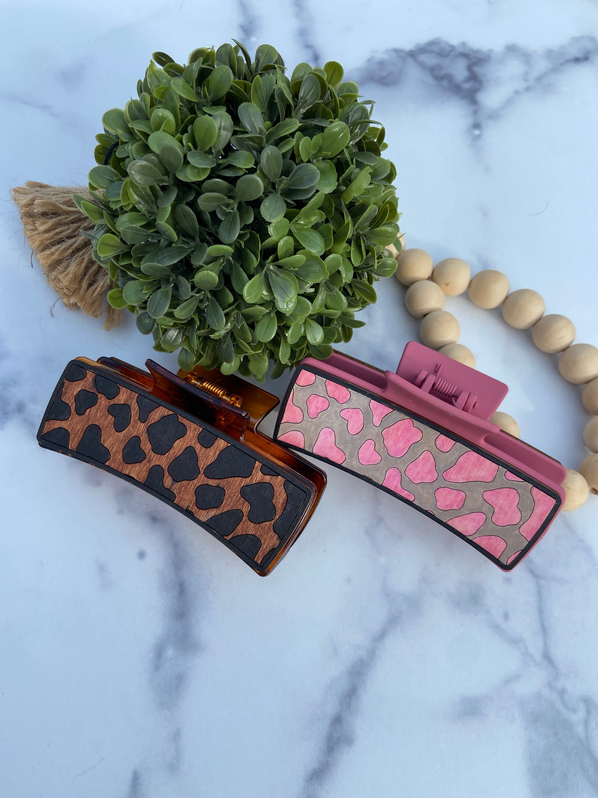 These adorable Cow Pattern 4 in Hair clips will make anyone look twice! Laser cut, hand painted design will add to your look. Each hair clip color will be different as they are made on demand. If you would like a certain color please add to note and I will try my best. These hair clips are a fun and unique addition to any outfit. With a laser-cut, hand-painted design, each piece is one-of-a-kind and tailored to your preferences. Make a statement and stand out from the crowd with this personalized accessory.