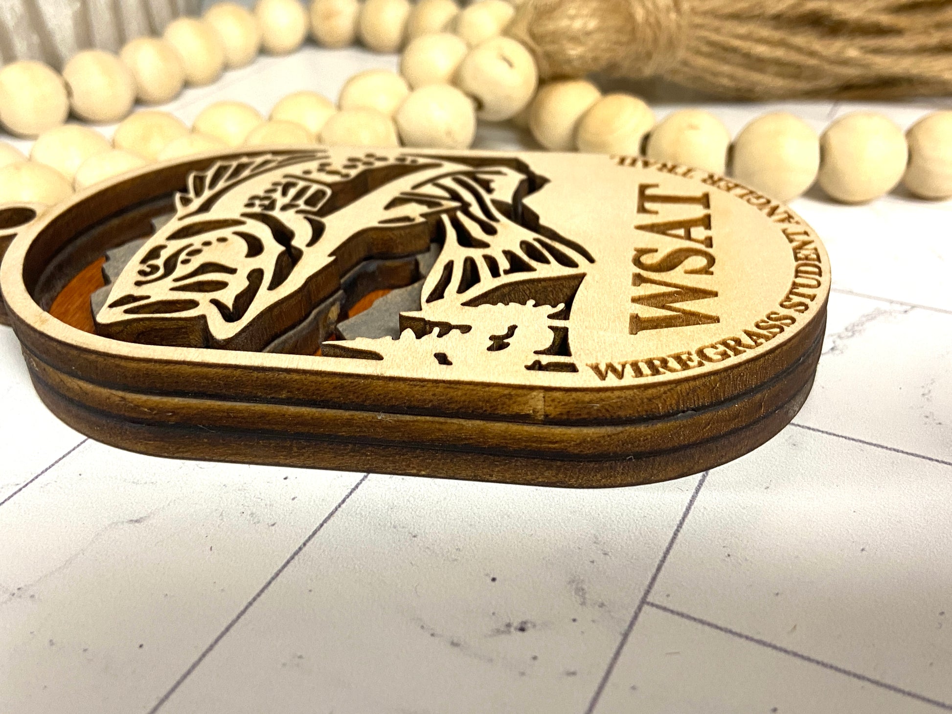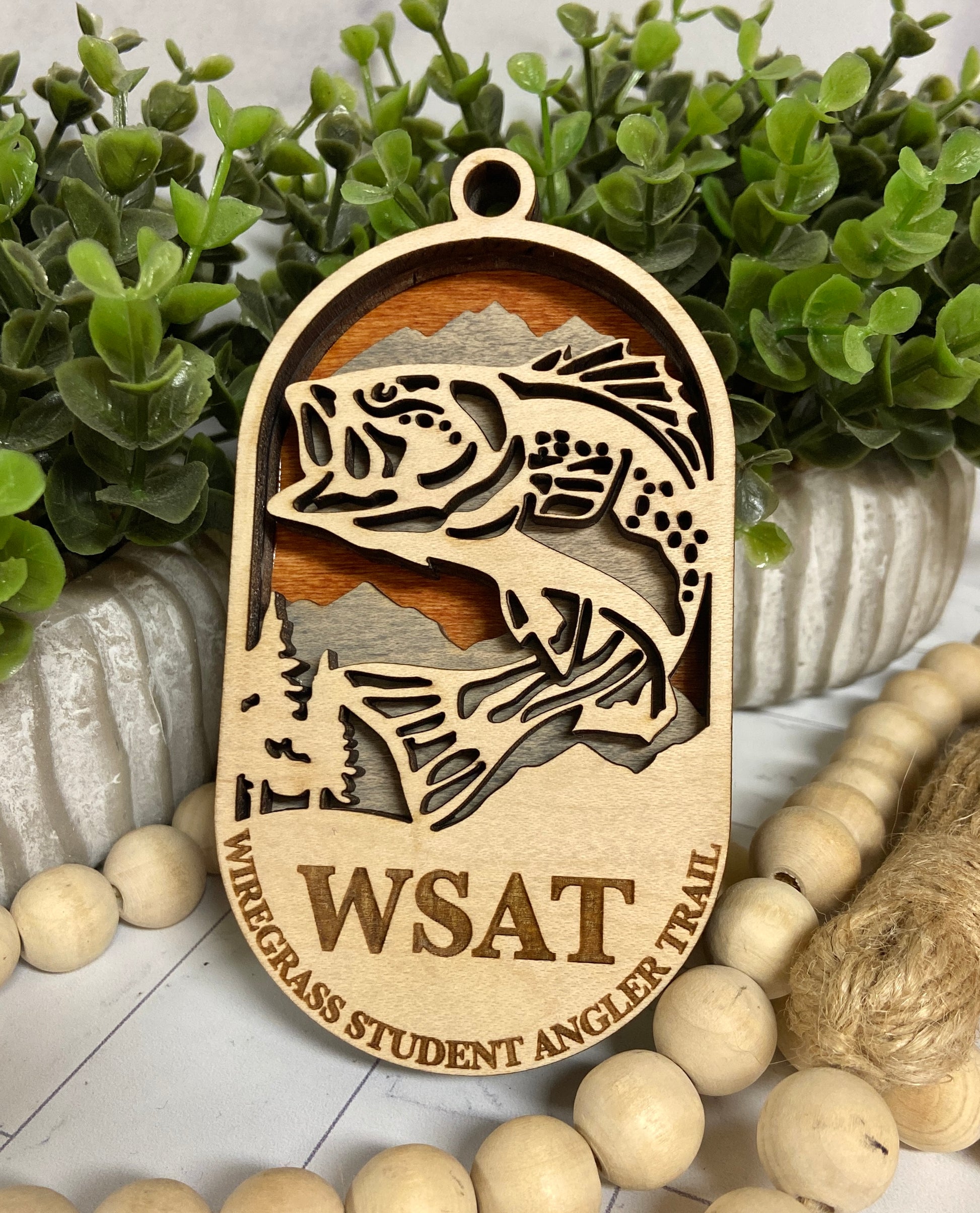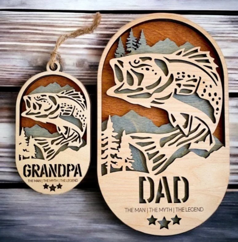 This expertly crafted Fishing Ornament measures 3.3" x 6" and features a laser cut and engraved design with hand-painted or stained detailing. Perfect for any fishing enthusiast, it can be customized with personal wording and color options. Add a touch of beauty to your holiday decor or gift it to a loved one.