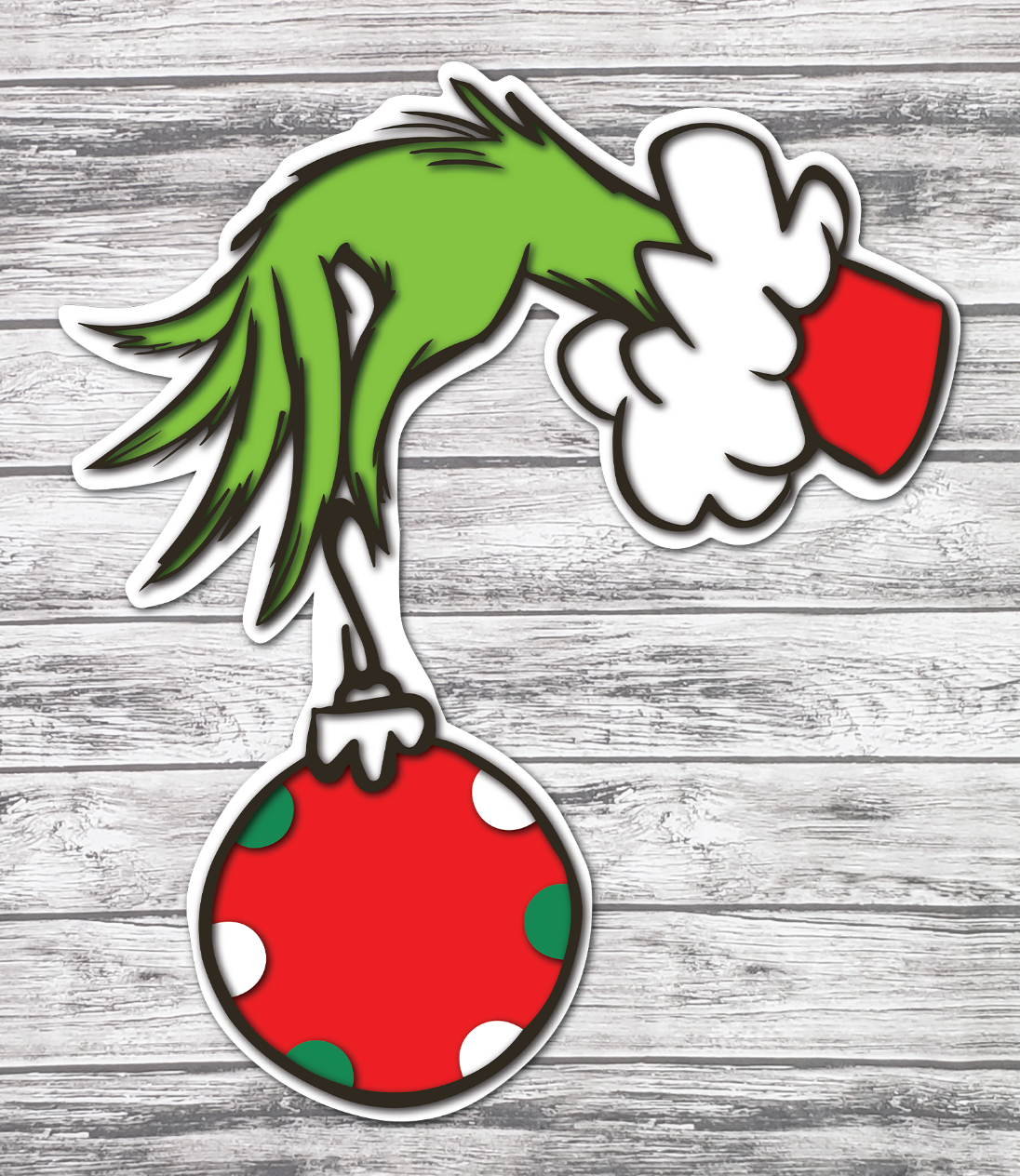 This fun grinchy hand is sure to bring fun to any door frame. Fits on most door frames and made from either MDF or Maple wood.
