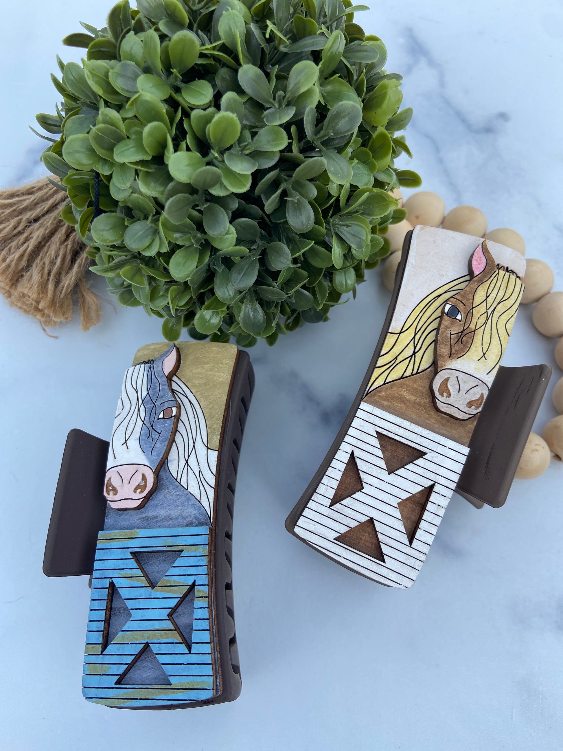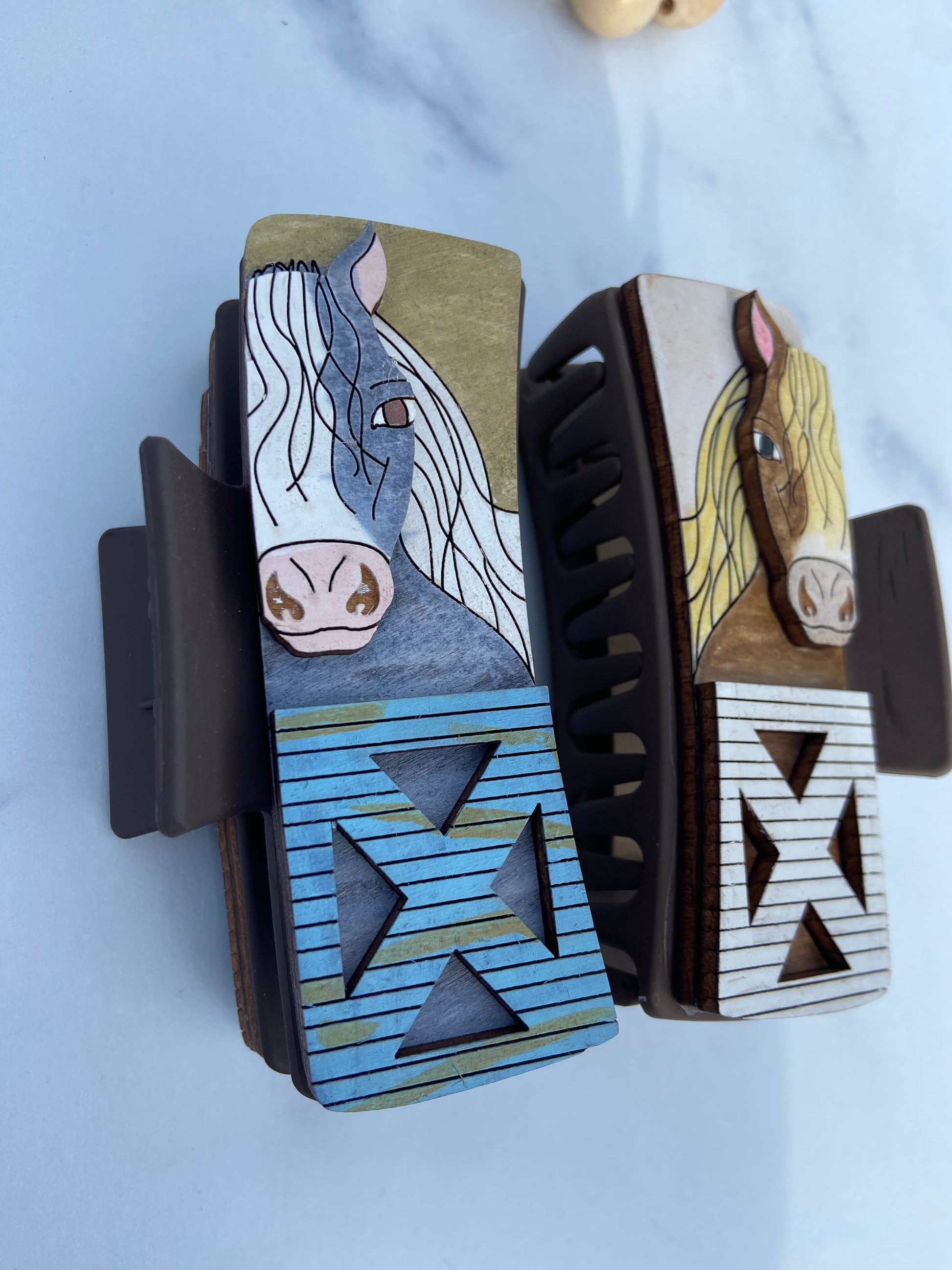 This 4-inch Horse Hair Clip is expertly crafted with laser cutting and engraving techniques. Each clip features a unique, hand-painted design and is sealed for durability. Colors may vary for a one-of-a-kind look.