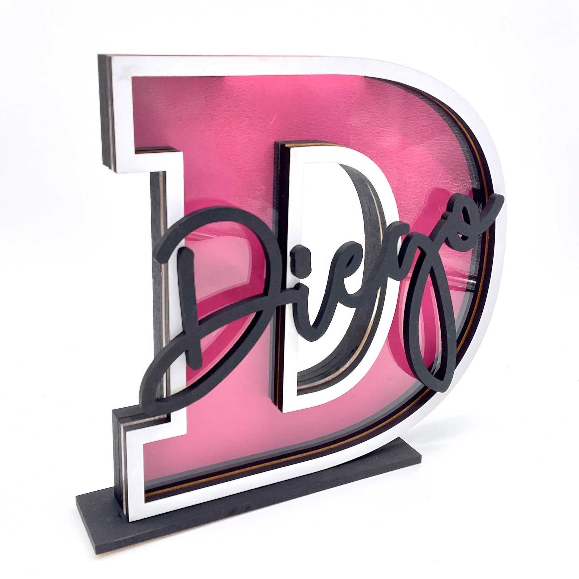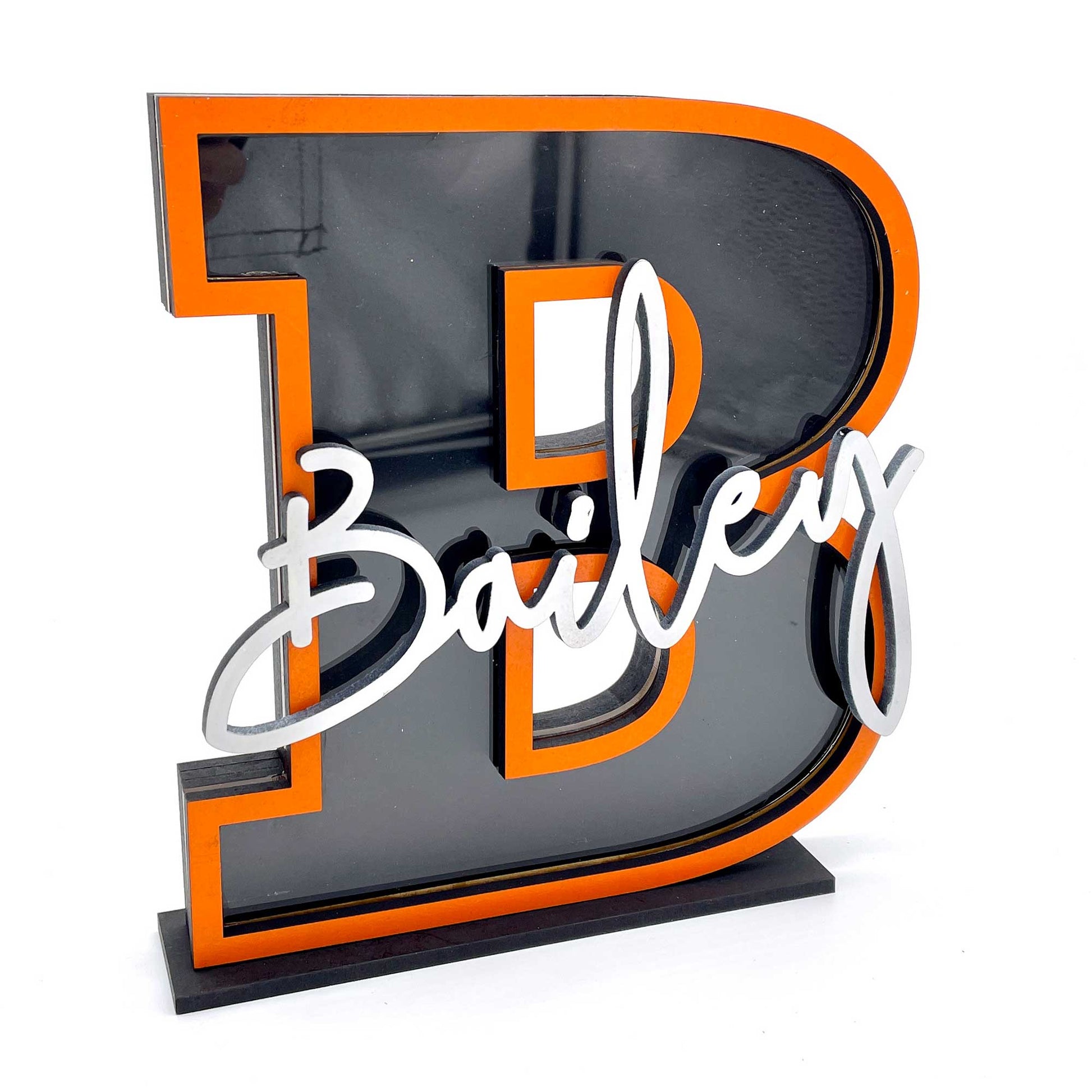 Measures about 9x8" and just depends on the letter wanting. PLEASE let us know what letter you are wanting and the background color you would like to order. I do have most primary colors and others available. We use wood, clear acrylic and white acrylic to make your product. These are made to order and not in stock as we do personalize them.