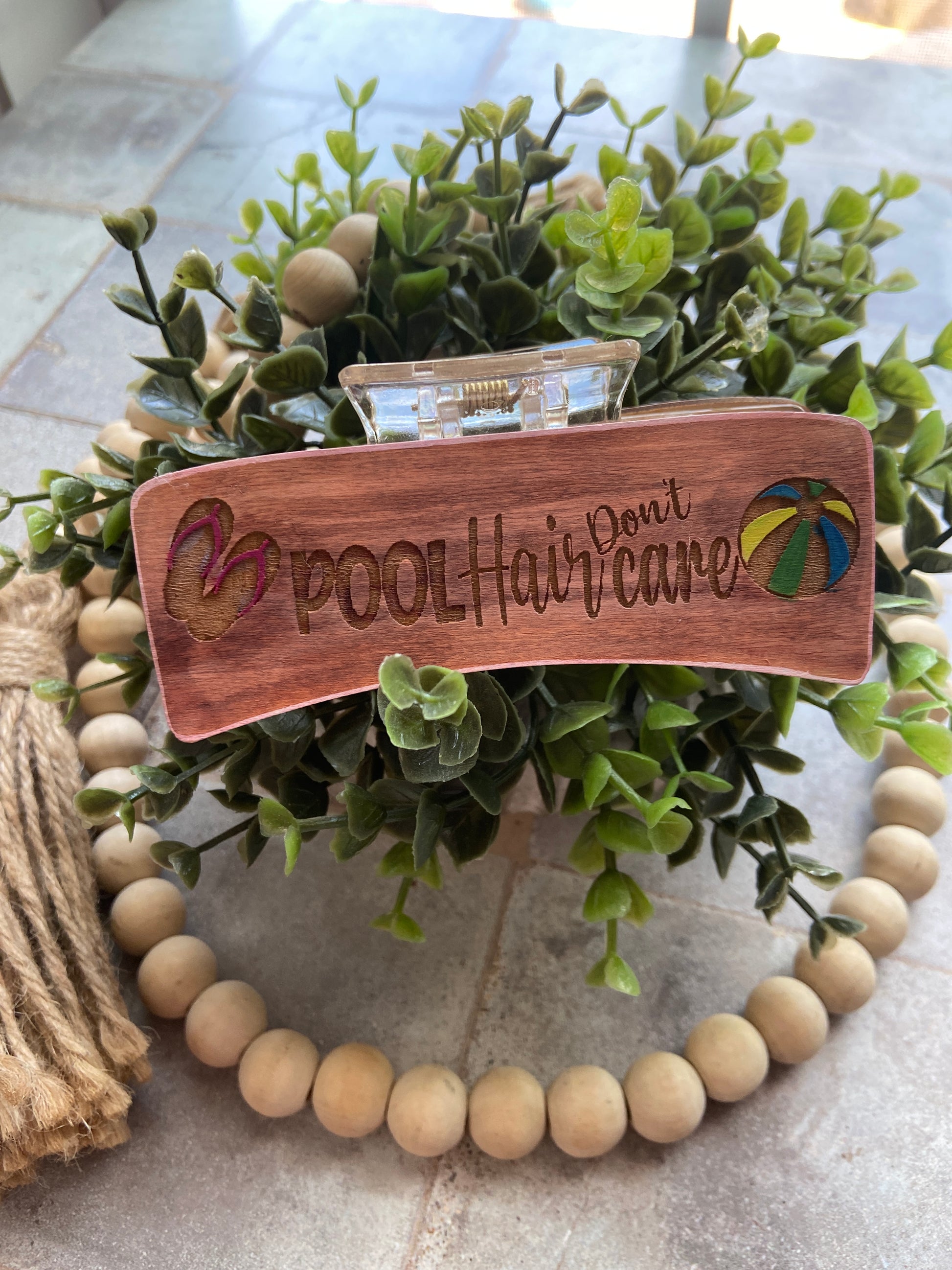 Experience effortless style with our Pool Hair Don't Care Hair Clip. Featuring a laser cut and engraved 4 inch design, this on-demand hair accessory is perfect for pool days. Offered in a variety of colors, it's a must-have for any haircare routine.