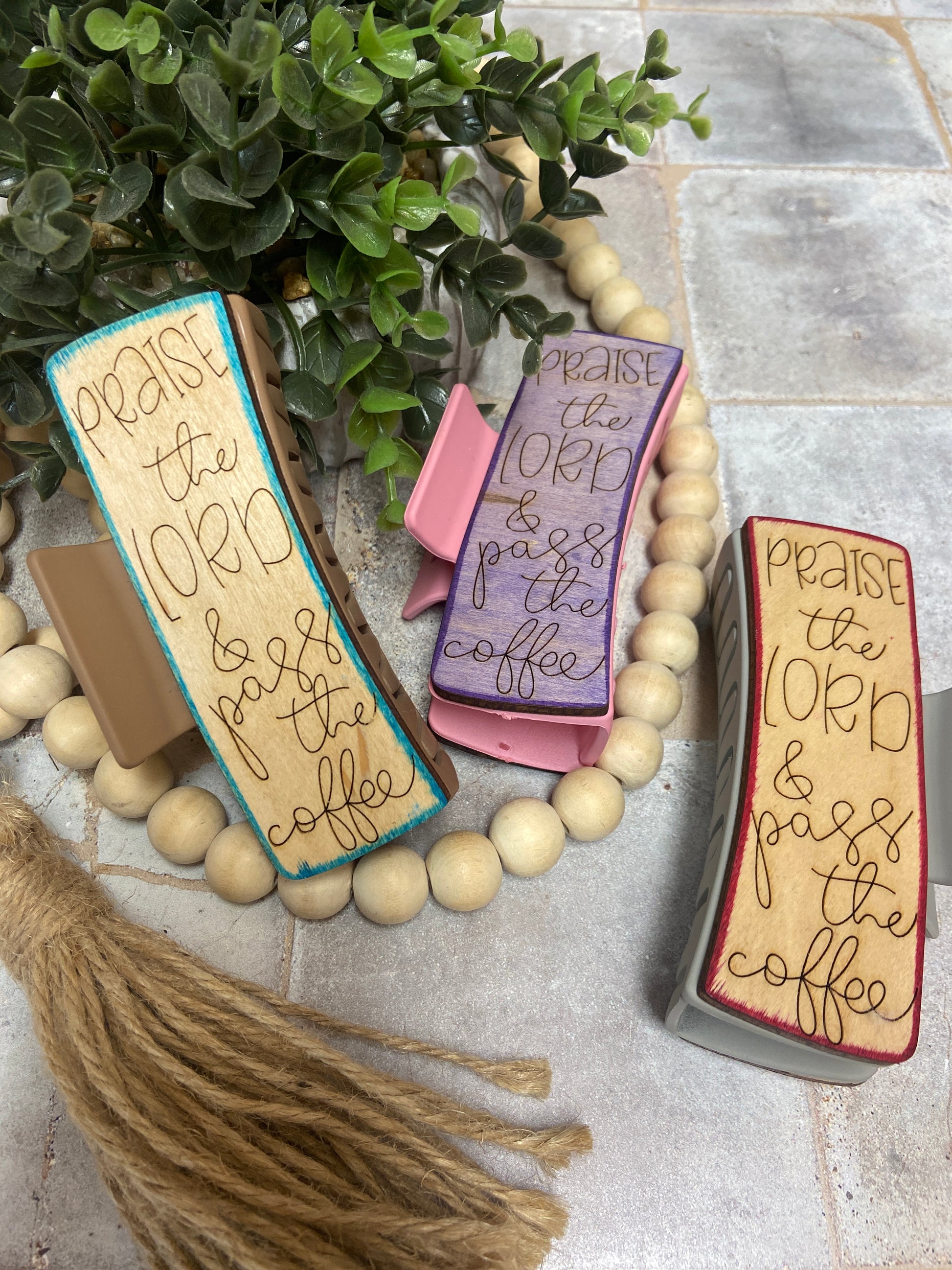 This 4 inch hair clip is crafted with laser cutting and engraving techniques, ensuring a unique design. Its slight staining or hand painting adds personality and makes it a one-of-a-kind accessory. Add a touch of style to your hair with this versatile clip. Colors will vary.