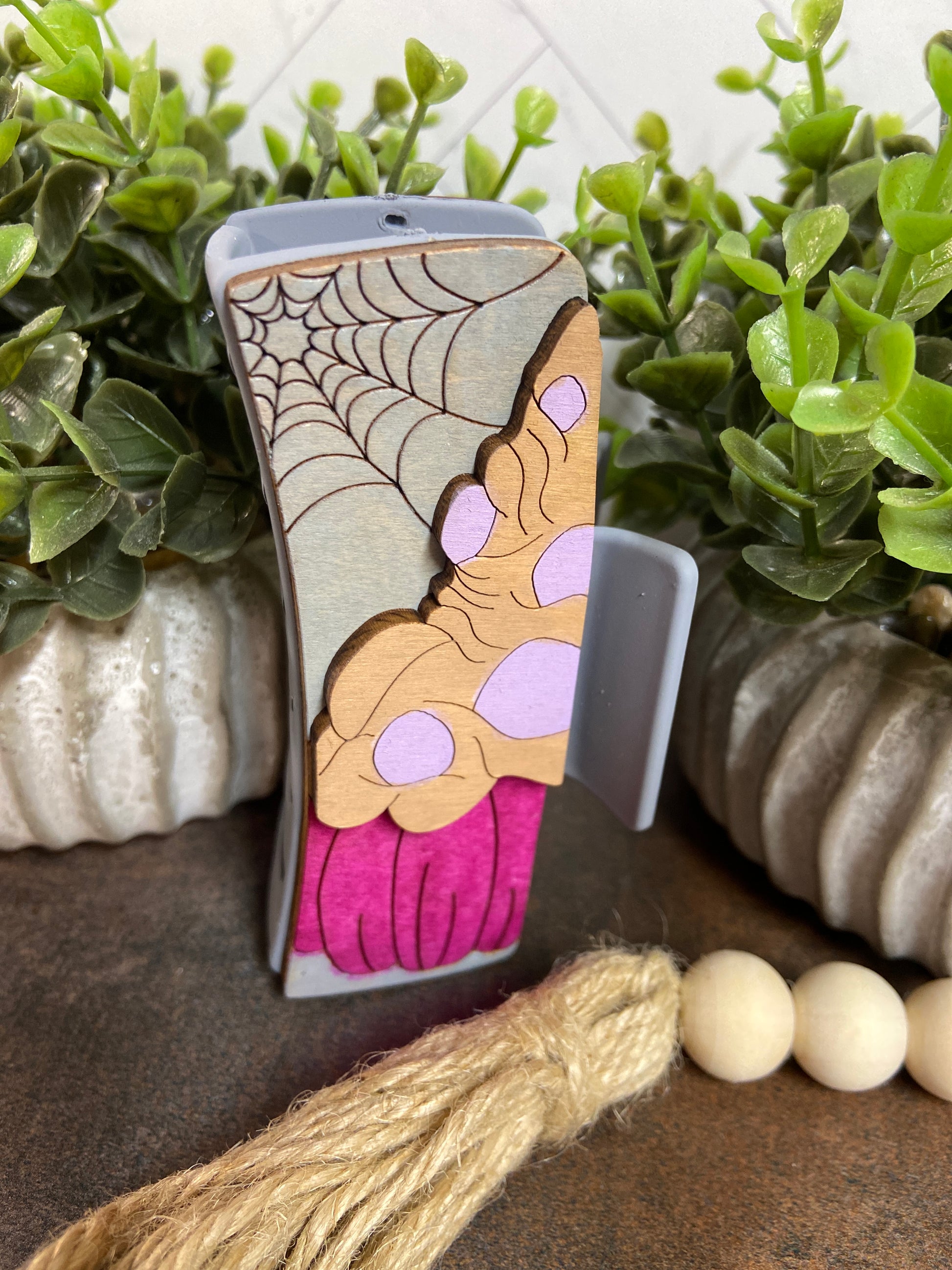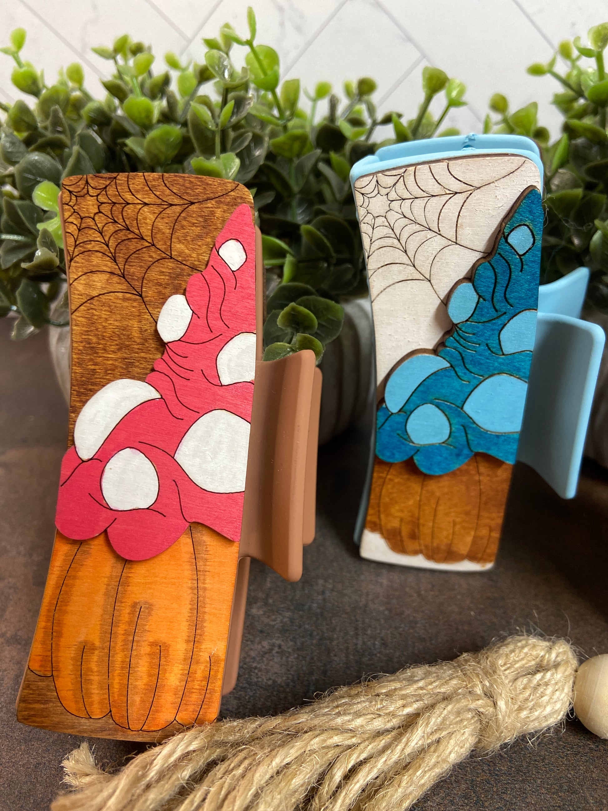 Expertly crafted with laser engraved and cut detailing, this Pumpkin Mushroom Hair Clip is a unique accessory. Measuring at 4 inches, each clip is hand painted and features a one-of-a-kind color scheme. The perfect addition to elevate any hairstyle with a touch of natural beauty.