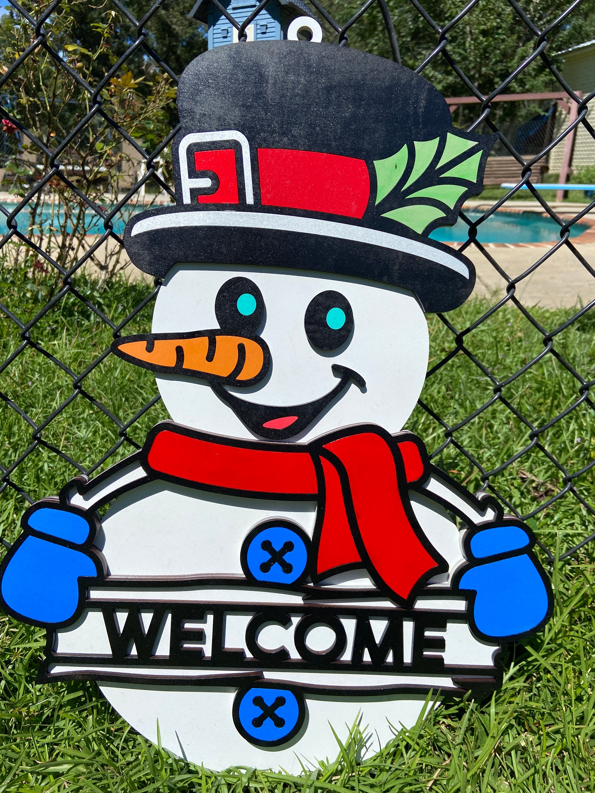 This 18" Door hanger is just the thing for your house! Welcome people in style with this adorable Snowman.
