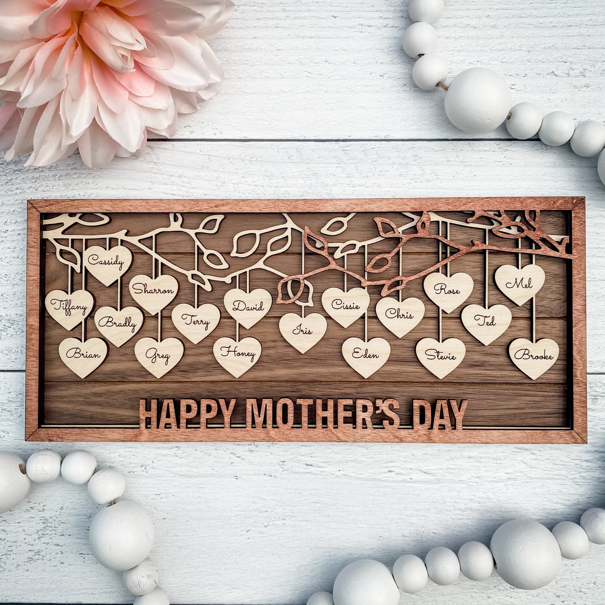 Custom Family Tree Frame, Wooden Hanging Hearts Mother's Day Frame, Custom Family Gift, Grandparent Gift, Add PETS TOO!