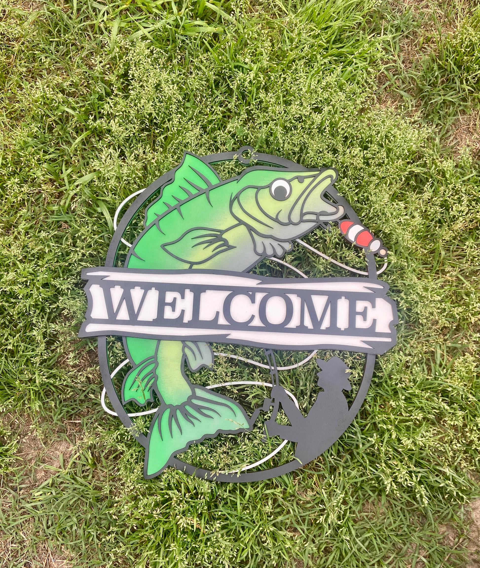 This 18-inch door hanger, designed for avid fishermen, is laser cut and hand painted for a unique touch. With vibrant colors varying from piece to piece, it's sure to make a statement on any door. A must-have for any fishing enthusiast!